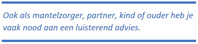 Bijvoorbeeld over hoe je je geliefde nog beter kan ondersteunen, hoe je je eigen emoties nog meer een plek kan geven, hoe je een lastige situatie zou kunnen aanpakken, hoe je een beter zicht kan krijgen op wat er in het ziekteproces nog allemaal te gebeuren staat,…