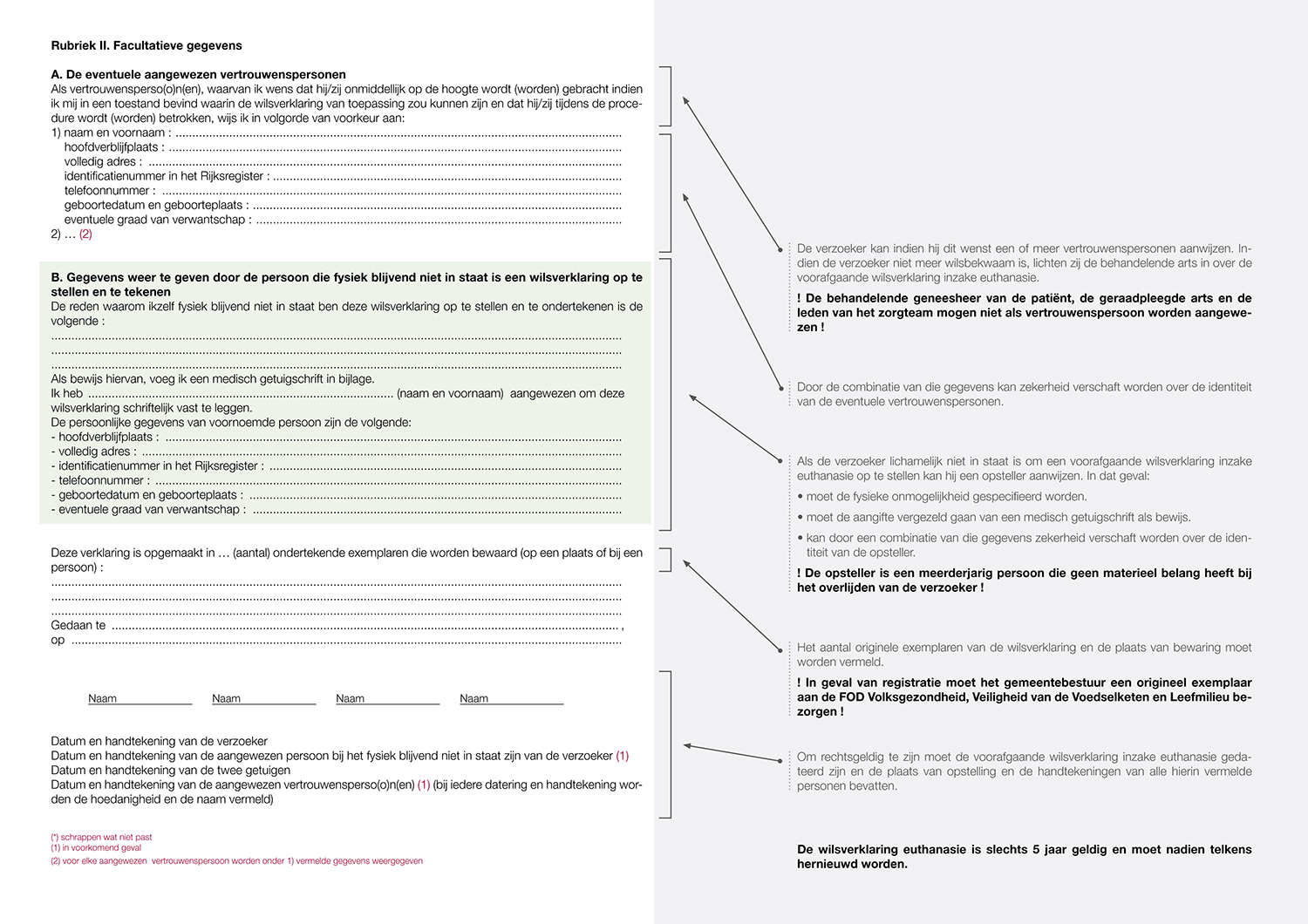 De overheid voorziet tevens in de mogelijkheid tot registratie van de wilsverklaring. Indien men hiervan gebruik wenst te maken dient men hiervoor een extra exemplaar te voorzien.